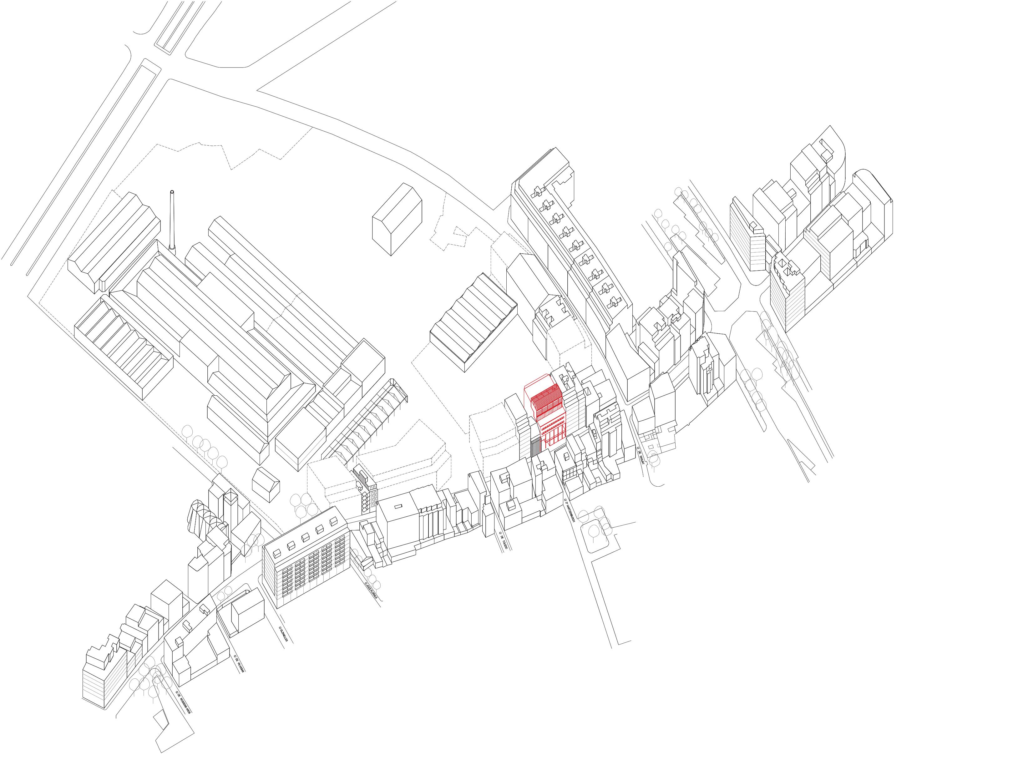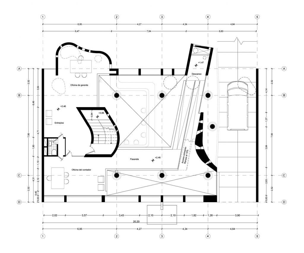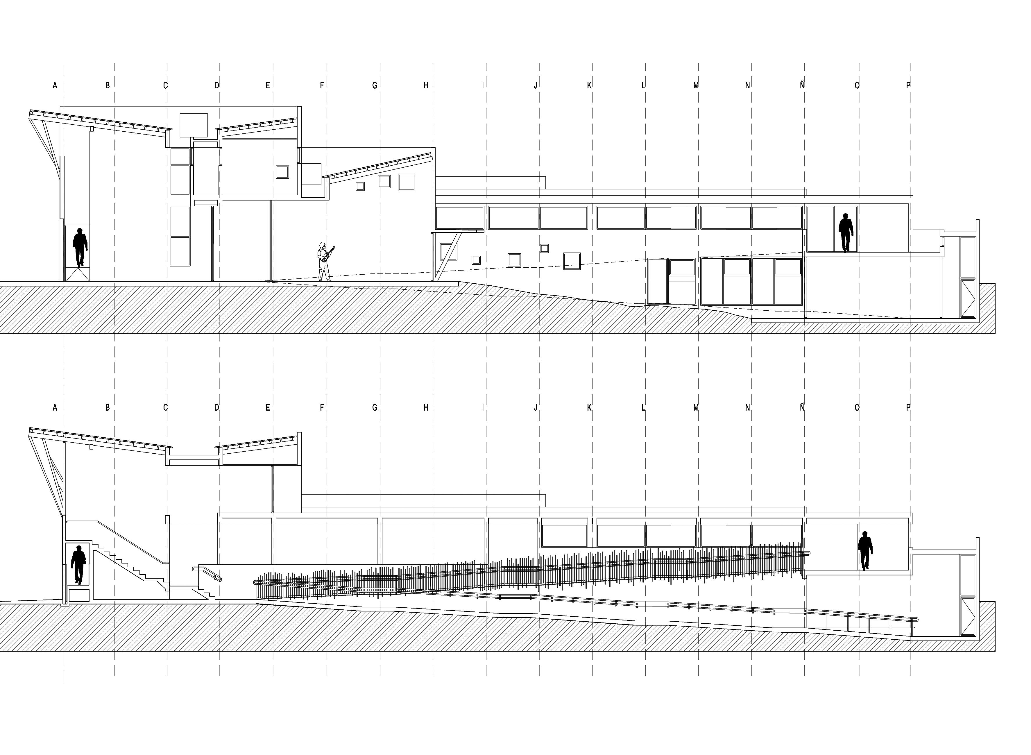 miento de esa fuerte linearidad de una gran nave contenedora que sin embargo resultará apta para plantear rasgos diferentes a algunas partes de esa larga configuración como el abordaje específico del sitio central,como señalan en la memoria: El vacío central es un cuadrado. Sin un programa previamente definido, articula los programas en torno a él, a través de recorridos y puentes sugeridos en el primer piso, y permite diversos usos a lo largo de sus asientos y espacios libres.