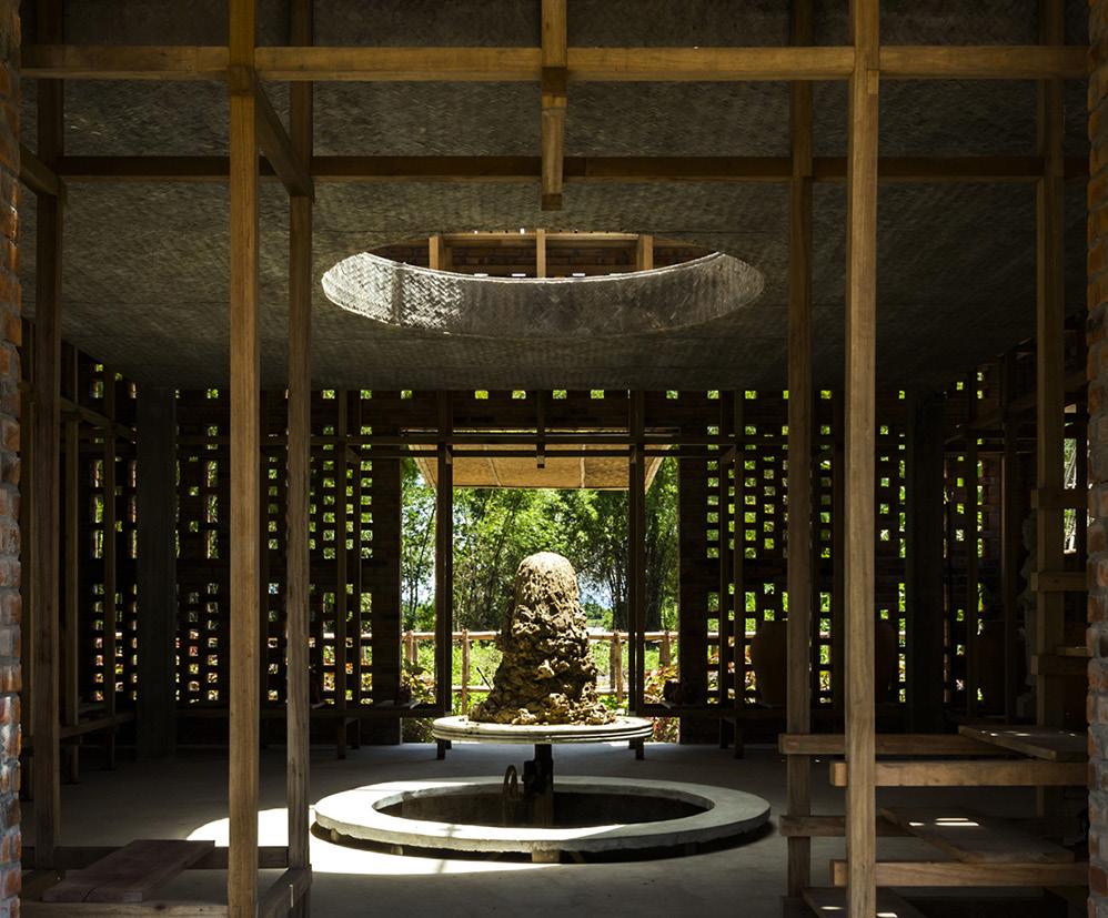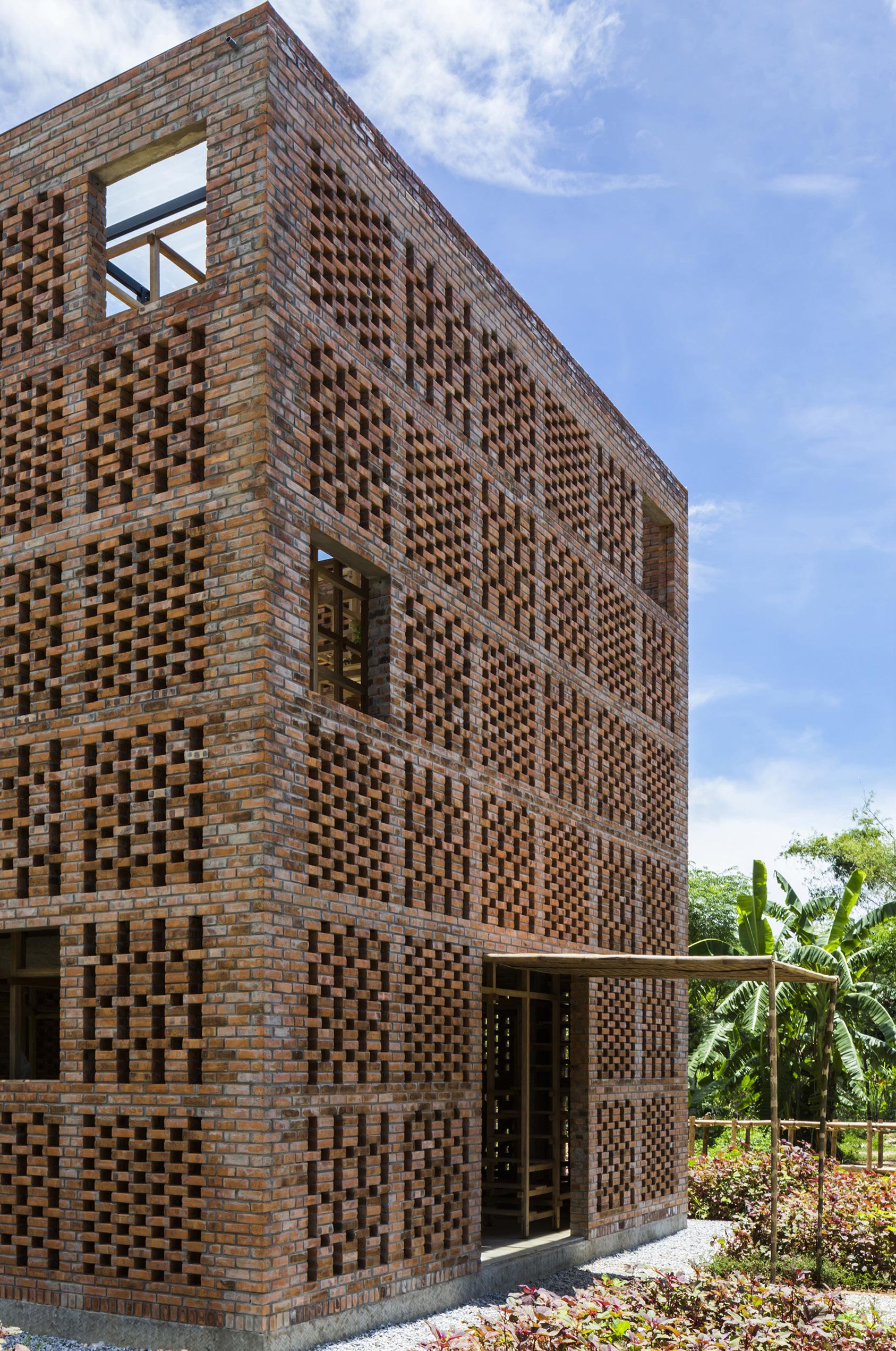 La capa más exterior del estudio está hecha de ladrillo macizo de arcilla, lo que recuerda a la gente el uso de hornos tradicionales de Vietnam. El estudio también tiene las características de la cultura Champa, ya que el área era parte de Tra Kieu, capital del reino Champa, del siglo IV al VII.