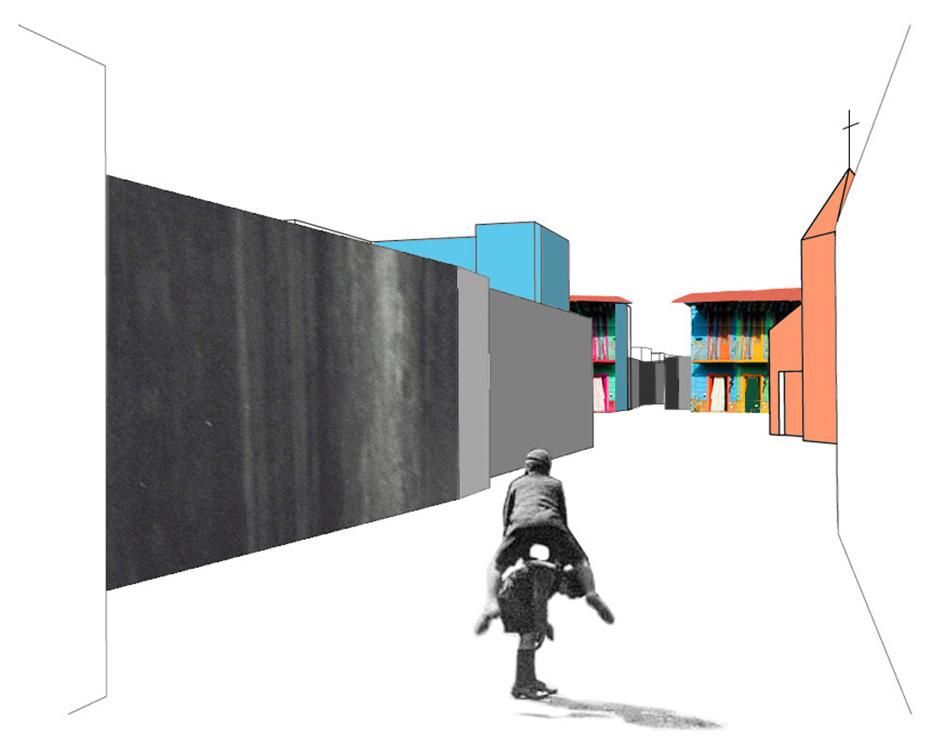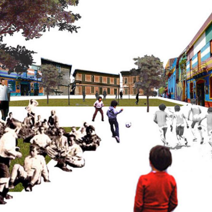 La plaza-central-como-mito es la mejor manera de (1) agrupar lo institucional (como institución en sí misma y como núcleo de las distintas instituciones sociales concretas existentes y por existir), (2) propiciar la convivencia comunitaria, volverla visible y enteramente compartida, a la vez que resguardada, (3) dar espacio abierto de recreación a los niños, institucionalizarlo (como símbolo identitario), junto a la reunión positiva y visible de todos los demás grupos etarios y (4) positivar la noción de urbanidad, de espacio público, de civitas, en el horizonte del habitante de la villa.