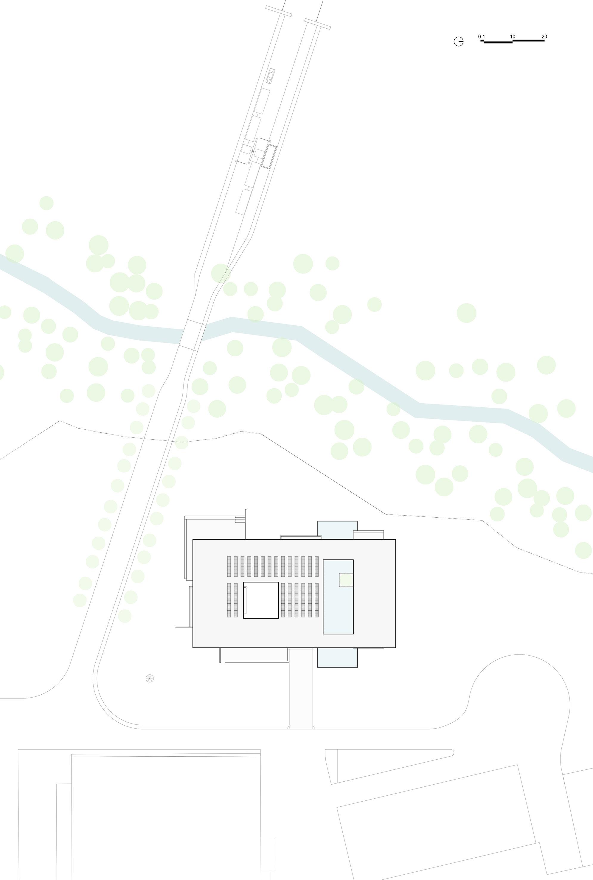 La topografía plana y la configuración lineal del sitio fueron determinantes para la idea arquitectónica.