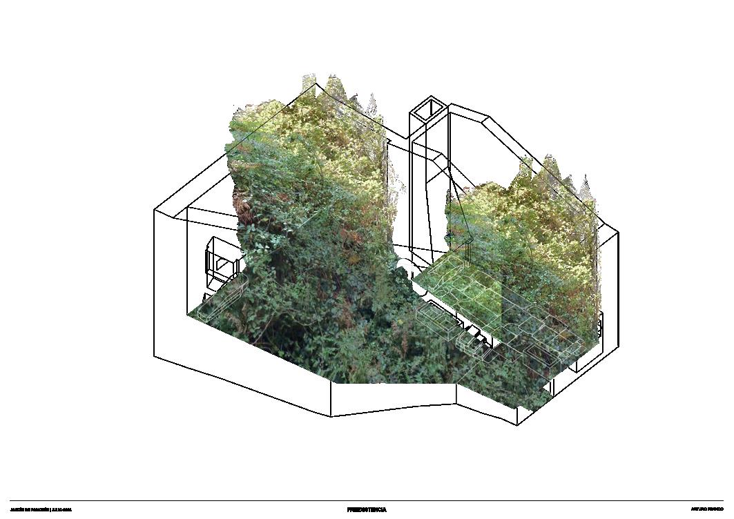 El par de trabajos de Arturo Franco aun en su modestia de escala y presupuesto plantean relevantes experimentos casi eco-arqueológicos para rehabitar una antigua construcción rural en el gallego paraje de Fieiro o para proponer un pequeño jardin en una casa antigua de Carnota en La Coruña. En ambos casos –como en el trabajo barcelonés de La Favorita– hay un desbordante propósito afectivo de considerar la ruina básica como un material de arquitectura, capaz de ser reinvestido como espacio habitable o de