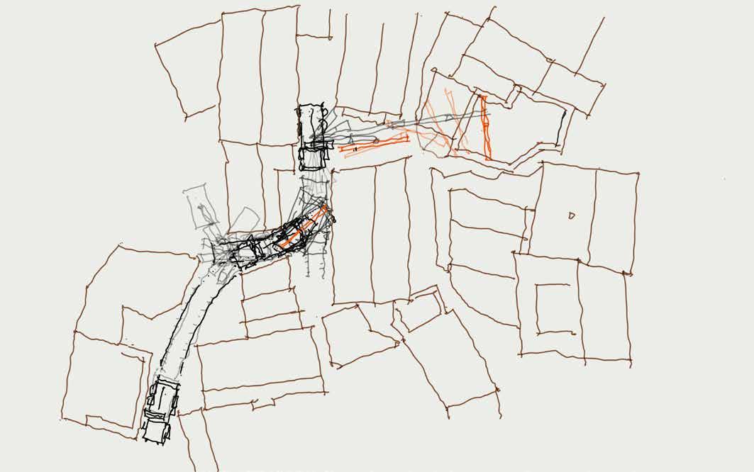 En términos de exploración tecnológico/material, se pensó en la noción del límite como espacio habitable con espesor de uso.
