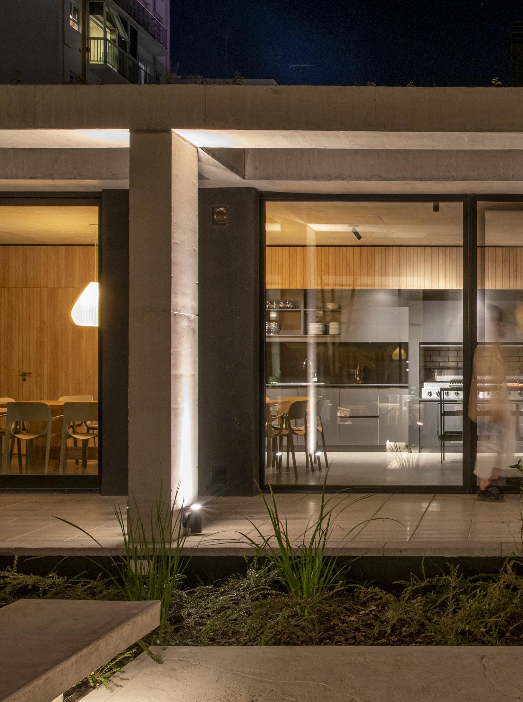 volumetría doméstica. En cuanto al interior cada unidad del dúplex dispone de dos pequeños núcleos cerrados alrededor de los cuáles discurren muy fluidamente los ambientes de la casa, que se apartan ingeniosamente de los estereotipos habituales del salón o del área de cocinar-comer.