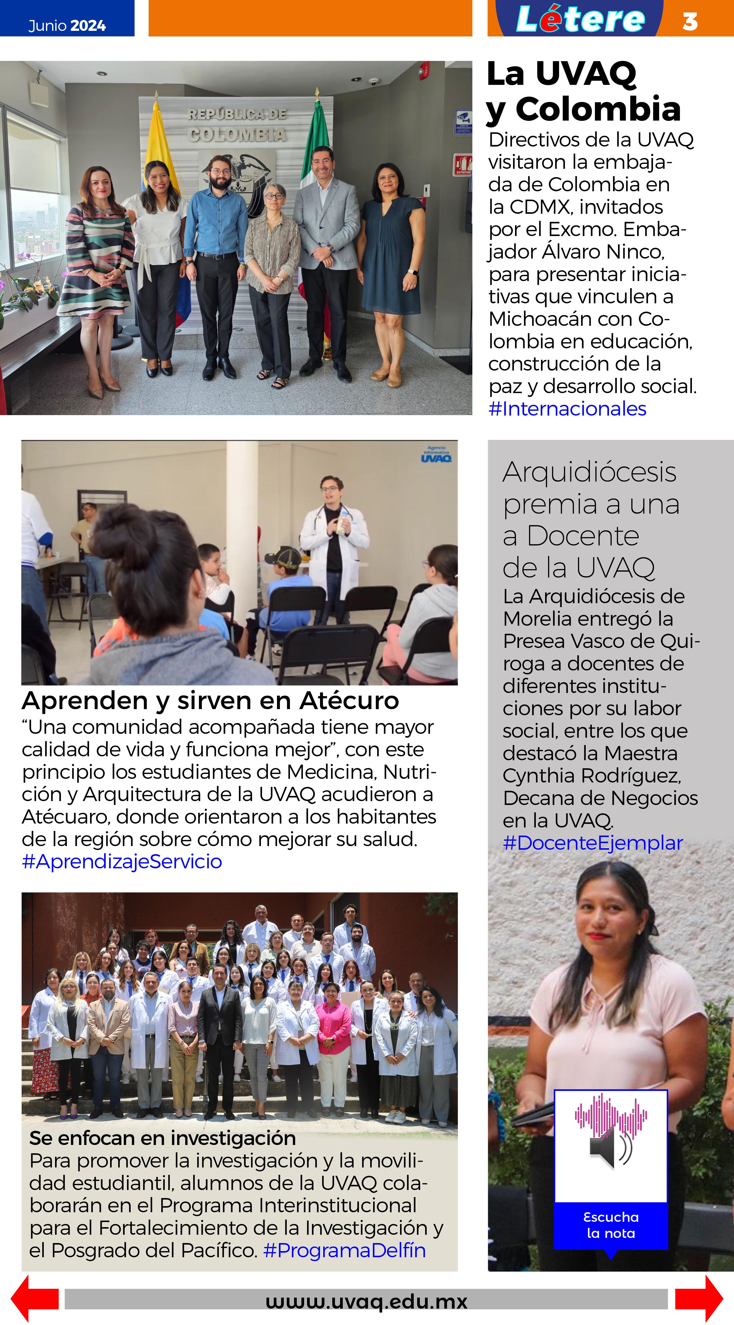 A punto de llegar al receso escolar, las actividades no paran en la Universidad Vasco de Quiroga (UVAQ), que al cumplir 45 años de historia, siempre tiene algo que hacer en las unidades académicas, así como en las facultades de Negocios, Salud, Sociales y Artes, donde continúan diversas labores de vinculación y desarrollo académico dentro y fuera de las aulas.