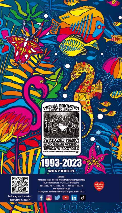 Od trzech dekad działamy, pomagając polskiej ochronie zdrowia. Pierwszy Finał, 30 lat temu, miał być jednorazową przygodą telewizyjną, ale jego efekty - pomoc oddziałom kardiochirurgii dziecięcej - okazały się tak niesamowite i porywające, że w zasadzie już od drugiego Finału nasza działalność jest bardzo dobrze zaplanowana, a z każdym Finałem coraz bardziej skuteczna. 30 lat naszego grania to blisko 70 000 urządzeń medycznych, a także świetnie prowadzone i osiągające światowy poziom ogólnonarodowe programy medyczne. To także nasze działania odnoszące się do każdej, nagłej sytuacji, klęsk żywiołowych, klęsk humanitarnych czy pandemii. Za każdym razem pokazujemy, że wraz z Polakami w kraju i poza jego granicami możemy bardzo dużo dobrego zdziałać dla wspólnej sprawy. Fundacja WOŚP to kilkadziesiąt osób w kilku działach, które realizują wszystko to, co sobie zaplanujemy. Efektami naszych działań dzielimy się bardzo dokładnie na naszych stronach internetowych. Okazją do całorocznego podsumowania jest ten informator, który trzymasz w ręku. Nasza Fundacja, tak jak inne dobrze działające organizacje pozarządowe, stara się jak najlepiej wypełniać te zadania, których z różnych powodów nie może wypełnić system. Momentami wydaje nam się, że jest ich bardzo dużo, co jeszcze bardziej pokazuje nasze umiejętności zarządzania środkami społecznymi i naszą ogromną determinację do super działań. Świat jest pełen wyzwań, co jest także bodźcem dla nas, aby nie zamykać się na siebie. Mówiąc „żyj zdrowo w zdrowym świecie”, potrafimy spojrzeć globalnie na ochronę przyrody, a przede wszystkim najbliższego nam miejsca, w którym żyjemy. Razem ze wszystkimi, którzy tworzą Fundację WOŚP, pragniemy żyć w duchu tolerancji, swobody wypowiedzi i budowania zasad wzajemnego szacunku. To także jest dziecinnie proste i robimy wszystko, aby jak najwięcej ludzi celebrowało nasze największe święto, jakim jest Finał Wielkiej Orkiestry Świątecznej Pomocy.