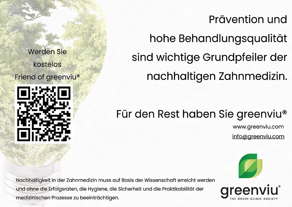 131 ZEISS EXTARO 300 Ihr Einstieg in die mikroskopgestützte Zahnheilkunde mit revolutionärer Einhandbedienung, integrierter HD Video-Kamera (1080p), HDMIAusgang, Aufnahme auf USB-Speichermedium, Auslöser am Mikroskop oder via Fernbedienung – ZEISS EXTARO 300 ESSENTIAL Paket Kontaktieren Sie uns unter vertrieb.meditec.de@zeiss.com und fordern Sie Ihr persönliches Angebot an. zeiss.com/extaro-300 Perfektionieren Sie Ihre Zahnheilkunst. ab 24.900 EUR (netto) Seite 132 Partners in excellence. United by smiles. Sie möchten die Vorteile der Aligner-Behandlung für Ihre Praxis nutzen und dabei einfach sicher gehen? Geht klar Mit der hohen Qualität der ClearCorrect®-Aligner und dem kontinuierlichen Support der Straumann-Experten über die gesamte Behandlung hinweg. www.clear-correct.de 230615_Anzeige_Fundamental_CC.indd 16.06.2023 14:14:54 Seite 135 Seite 117 Seite 118 schmerzfrei, blutstillend Eliminiert 99.9% aller Viren, Keime und Bakterien Jetzt beraten lassen! Tel.: 06187 90 96 50 Die Einsatzmöglichkeiten der Ozontherapie in der Zahnmedizin sind sehr vielfältig. Die schmerzfreie Anwendung und die schnellen Behandlungserfolge sprechen nicht nur Schmerzpatienten an. Die Ozontherapie