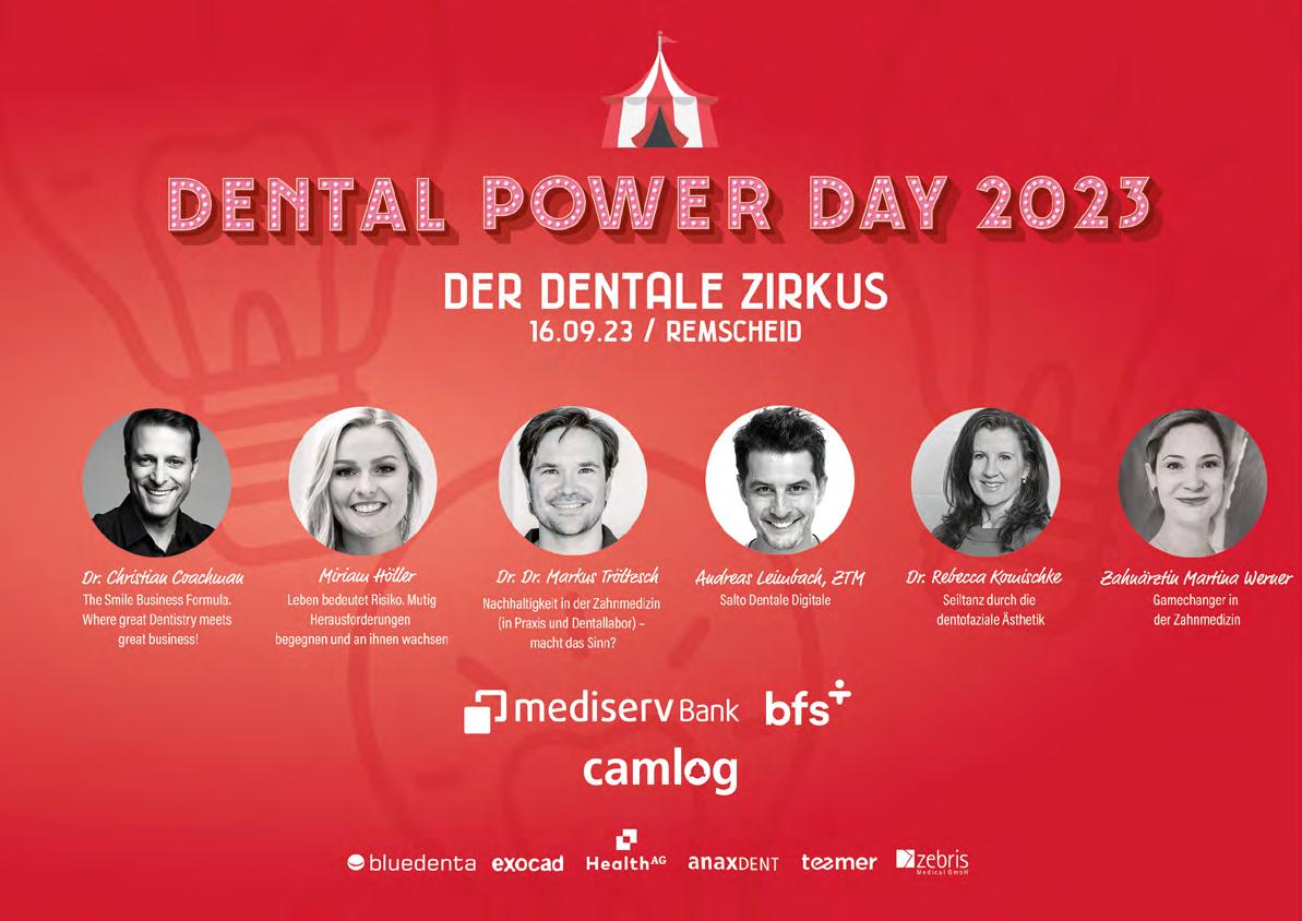 Kommt zum Dental Power Day 2023 unter dem Motto „Der dentale Zirkus“! Lasst euch anstecken von dem Spirit einer Community, die aufgeschlossen und herzlich ist. Diese Veranstaltung ist für Zahntechniker, für Zahnärzte, für dentales Fachpersonal, für Clowns, für Studies und Azubis, für Jung und Alt, für „alte Hasen“ und „junge Hüpfer“, für Jongleure und Artisten, für Dompteure und Zauberkünstler.
