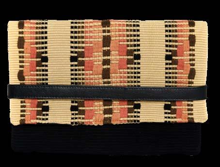 A diferencia de las colecciones anteriores elaborados 100% con tejidos o materiales naturales, estas tres bolsas exeptuan una pequeña hebilla de metal reciclado que es parte de la correa de hombro que puede ser desmontable para llevarla como un clutch. (Dicha correa solo es desmontable de un lado con una hebilla)