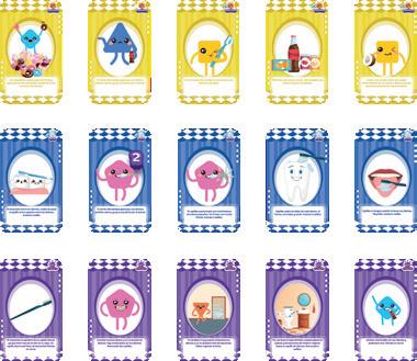 • Curiosidad (agregar aquí un ícono para estas tarjetas): son curiosidades o información nueva para aprender más sobre el cuidado de los dientes.