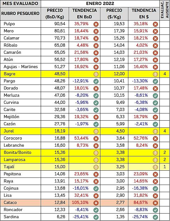 LOS PRECIOS DEL PESCADO EN LA CIUDAD DE CARACAS Y SU COMPORTAMIENTO (ENERO 2022)