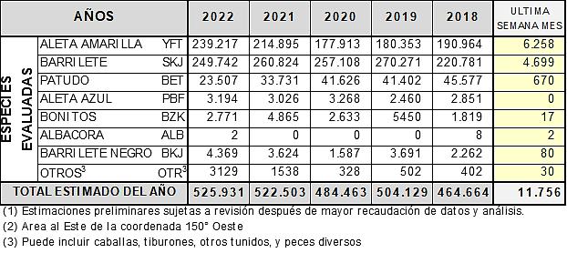 REPORTE DE LA CAPTURA ESTIMADA E INFORMACIÓN DE LA FLOTA DEL OCÉANO PACIFICO ORIENTAL (SEPTIEMBRE 2022)