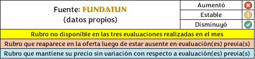 Tabla 2.- Comportamiento en la oferta de los rubros evaluados y de sus cotizaciones promedio de mercado