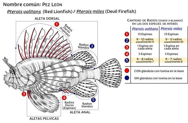 Loreto-Viruel R.M., E. Rendón-Hernández & S. R. Espíndola (2023). “Plan de Acción Nacional para el Manejo y Control del Pez León en México”. Comisión Nacional de Áreas Naturales Protegidas, Amigos de Sian Ka’an, A.C y Mesoamerican Reef Fund. 77 p. Disponible en: https://tinyurl.com/ycy29vtw Moreira Zelaya M. (2012).”Efectos Tóxicos y Manejo de las Lesiones Provocadas por el Pez León (Pterois volitans, P. miles)”. Rev. Fac. Cienc. Méd. (Julio – Diciembre). pp17. Disponible en: https://tinyurl.com/47jn3u9r