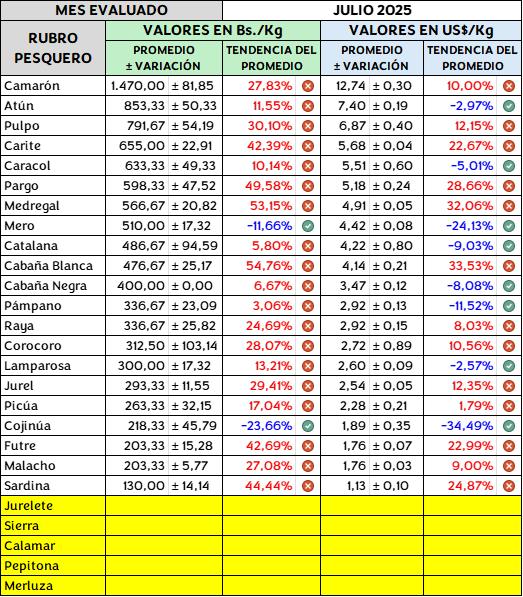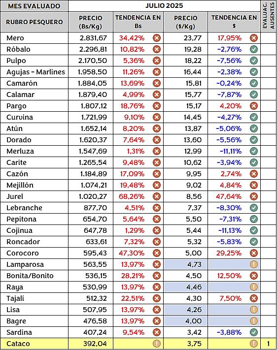EVALUACIÓN DE LOS PRECIOS DEL PESCADO EN LA CIUDAD DE CUMANÁ (JULIO 2025)
