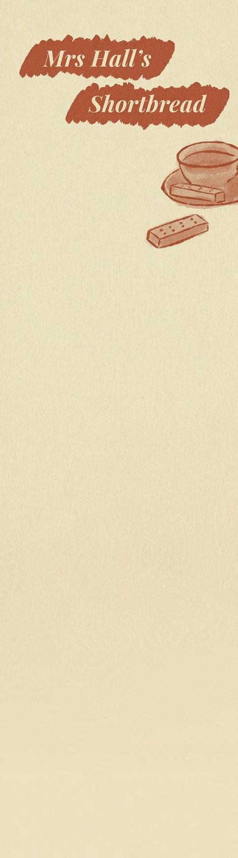 Buttery, crumbly shortbread biscuits are an easy-to-make treat. Mrs. Hall serves them with a pot of tea… but they are baked by Bethany Heald, food stylist and home economist, who kindly shares her recipe.