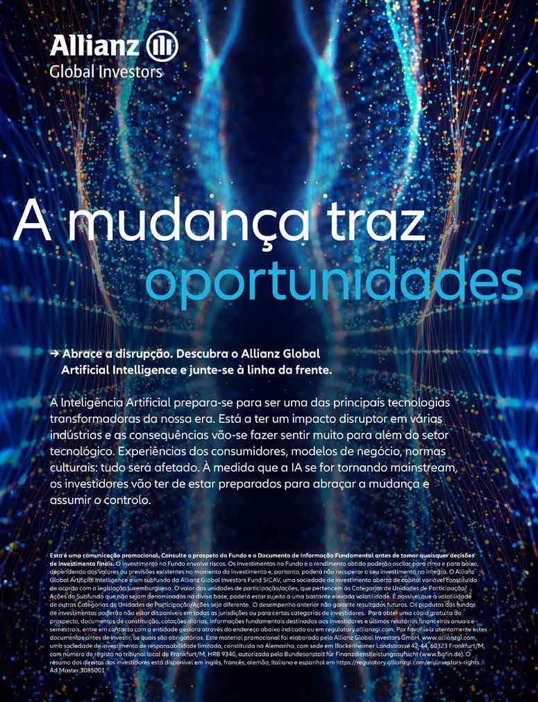 6 FUNDSPEOPLE I SETEMBRO E OUTUBRO PANORAMA 22 FÓRUM APFIPP Poupança e Investimento TENDÊNCIAS 30 CAPA Os responsáveis de Vendas favoritos dos selecionadores nacionais 36 NEGÓCIO Sociedades de capital de risco: pole position para o negócio de fundos imobiliários? 40 GESTÃO Os tipos de riscos da concentração ótima 44 ESTRATÉGIAS A nova vida dos fundos de mercado monetário 48 PLANIFICAÇÃO FINANCEIRA A história da relação da alocação dos particulares a fundos e depósitos 52 ADVISORY Um ano de Green MiFID: o balanço feito pelas entidades 55 FUNDSERVICES A tecnologia no mundo da auditoria de gestão de ativos em Portugal 58 LEARNING A intermediação financeira não bancária sob análise 62 LEGAL ELTIF 2.0 ENTREVISTAS 64 GURU Tobias Rommel 68 GESTOR PORTUGUÊS Sérgio Silva 70 GURU Oliver Collin 74 DISTRIBUIDOR Bernardo Meyrelles 76 GURU Alexandra Christiansen 80 5 MINUTOS Marco Bizzozero 82 GURU Thorsten Winkelmann PRODUTOS 86 COMPARATIVA Ásia Pacífico para além da China 91 ISR ODS na mira das gestoras? 94 ALTERNATIVOS Futebol profissional na Europa: rola a bola numa partida importante para o investimento alternativo? 96 EMERGENTES Emergentes: melhor a 20 anos do que a 15 99 INSTITUCIONAL Fundos e ETF: pesos pesados dos fundos de pensões abertos nacionais 102 ETF ETF: da periferia ao centro OUT OF OFFICE 104 ESTILO DE VIDA Festa FundsPeople
