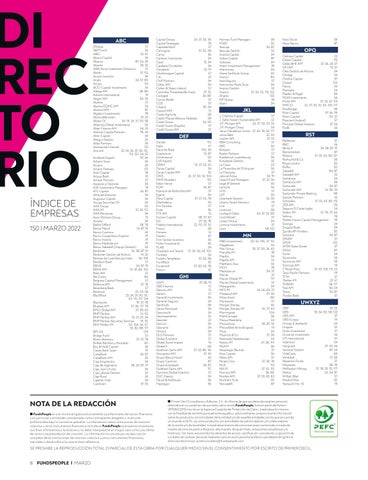OPQ Oaktree Capital 23 Ocean Capital 115 Oddo BHF AM 37, 56, 24, 57 OFI AM 19, 57 Olea Gestión de Activos 34 Omega 34 Orienta Capital 57 Ossiam 122 Pactio 34 Patrivalor 34 Payden & Rygel 58 PGIM Investments 56 Pictet AM 37, 55, 67, 114 PIMCO 22, 37, 50, 55, 63, 105, 117 PineBridge 58 Polar Capital 37, 56, 78 Polen Capital 50, 57 Prescient (Ireland) 57 Principal Global Investors 37, 56 Profit 34