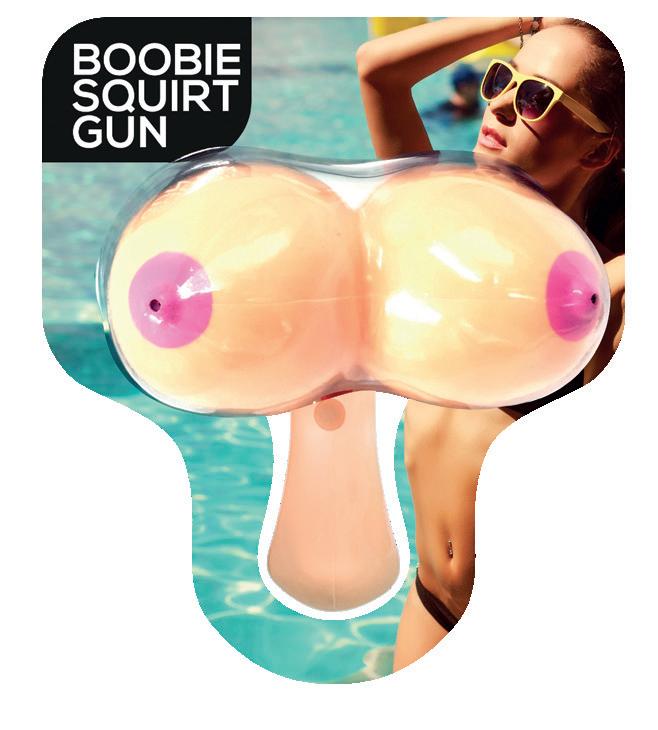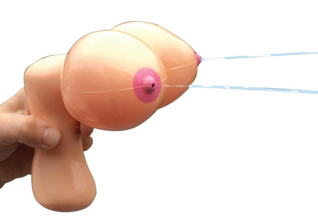 Boobie-shaped “water pistol” fires water or beverage of choice impressive distances from both nipples.