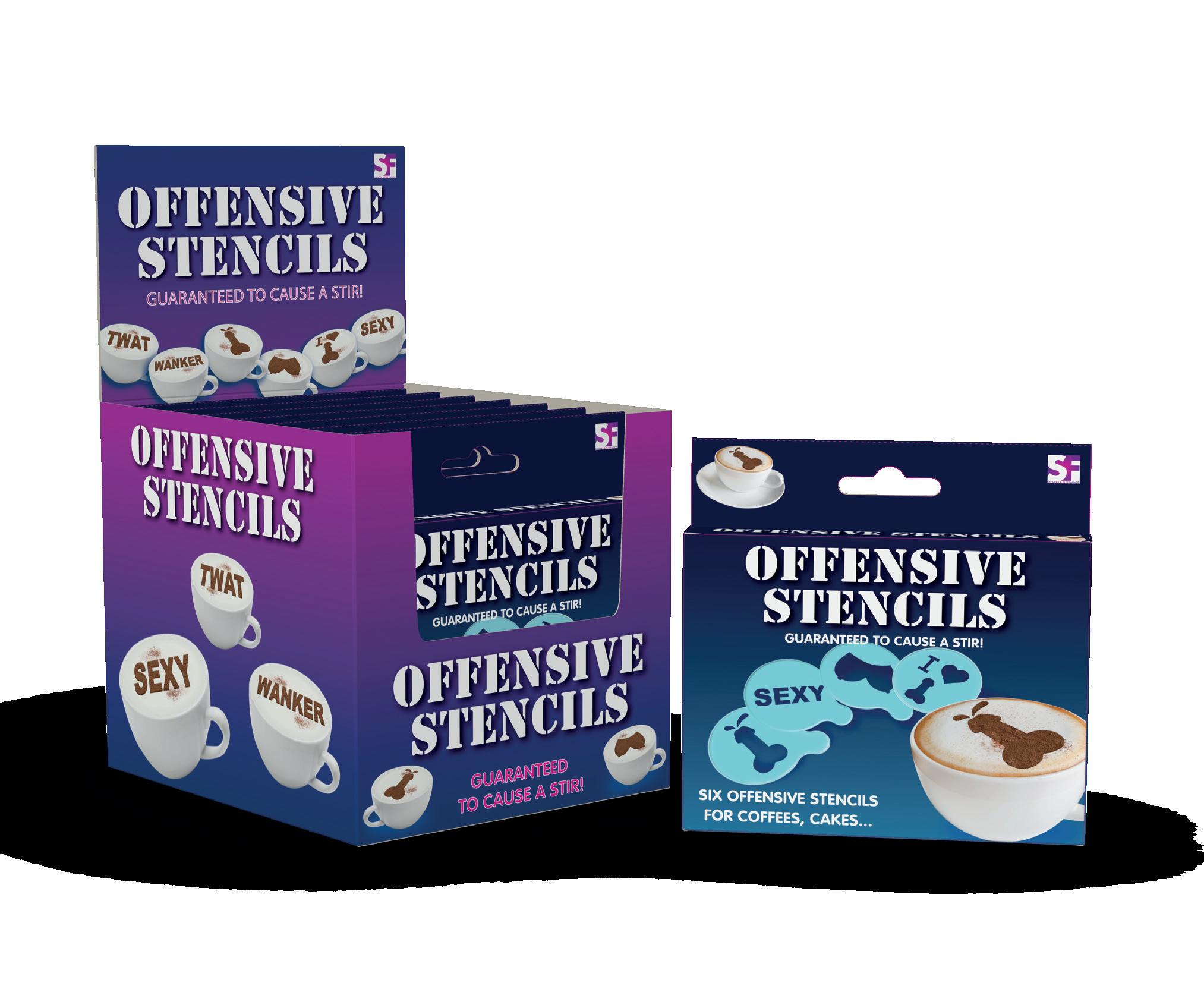 Guaranteed to cause a stir, these 6 offensive stencils are perfect for pouring on to a frothy coffee or decorating cakes.