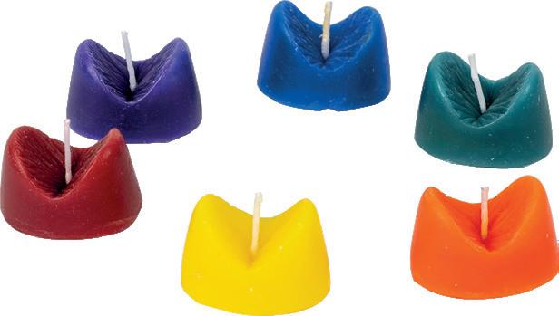 Six rainbow-coloured anus candles with romantic scents. Includes Mint Oil, Midnight Blue, Egyptian Musk, French Rouge, Pina Colada and Passion Fruit