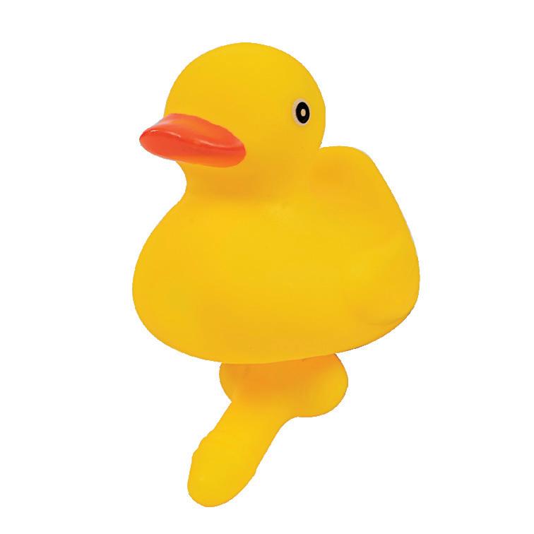 Classic yellow bath-time duck with a hidden menace lurking below the water line.