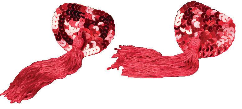 Change any bedroom into a boudoir! A pair of shiny, red sequin pasties with silky red tassels, these are ideal for anyone wanting to give burlesque a try for fun or for real! With adhesive backing which won’t irritate the skin.