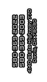 580-369-2003 or 580-369-2022 • South of Davis 4 miles
