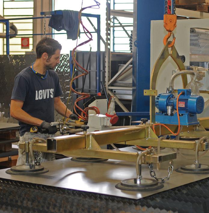 During the month of January 2011, Project 2000 doubled the floor space of its produc tion plant, transferring part of the machinery, the warehouse and the assembly stations to a new facility, adjacent and connected to the original one. And so the total covered floor space went from the original 1500 m2 to 3200 m2. This is an expansion which allowed the produc tion flows to be optimised, rationing the goods handling times and improving the produc tion process. At the centre of the industrialisation project is a cu tting-edge computer system which dialogues with all of the company divisions: from the produc tion office to the work stations where the metal working phases are conducted (laser cu tting, punching, bending), to the work stations