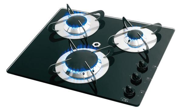 Elegant, prac ti cal, func ti onal, the “Crystal” cooking surface comes in many di ff erent shapes and sizes. The range even includes a choice of combina ti on units with built in sinks. With a variants of one, two or three burners being available, there is an ideal solu ti on for the most demanding user. The gas cooking surface is made in tempered and scratch resistant crystal glass. The burners, all equipped with a thermocouple, have self locking covers. They are available in three di ff erent power ra ti ngs: 1000 W for the auxiliary, 1900 W for the semi-rapid and 3000 W for the rapid.
