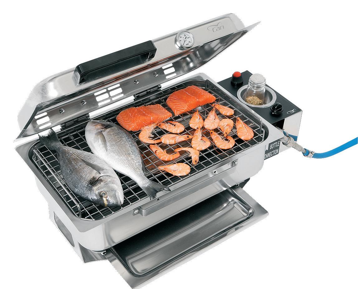 The two new portable barbecues are called BQ 2988 and BQ 2989, designed for boating and camping which were introduced for the first time in the world at METS (Marine Equipment Trade Show) in Amsterdam by the Italian company, CAN (Costruzione Accessori Nautici - Nautical Accessories Construc tion). The two models have identical characteris tics and dimensions, but one