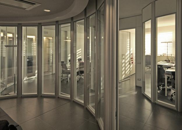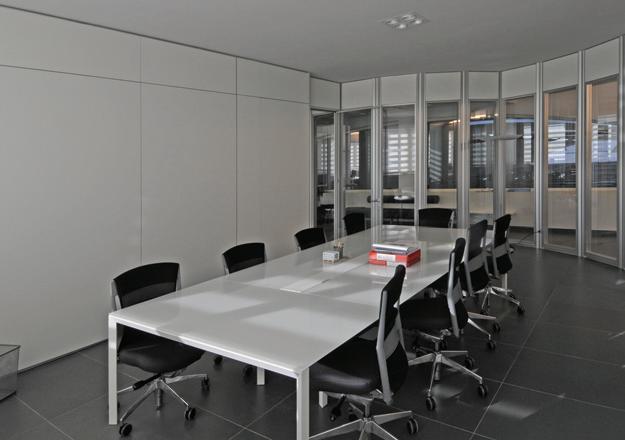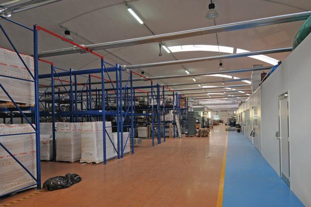 dedicated to assembly and right up to the storage warehouse and shipping department. In fact, all of the work stations, have a terminal connected to the internal network where there are exploded views of all the products. This way the operator can call up the drawing or technical information for the ar ticle which is being processed in real time to verify the produc tion phases or the conformity. The produc tion office, which supervises the produc tion schedules and processes, becomes an interac ti ve body capable of dialogue with the workers, offering support and responding to queries. The introduc tion of a system with bar codes then allows all of the work phases of the product to be tracked in real time, right up to shipment. The warehouse has been furnished with equipment to handle the goods and deposit them quickly on the shelves. This way, with the computer support which logis tics has introduced, Project 2000 has taken a considerable step forward in management of the warehouse and the outgoing goods. The new site can also count on stylish and tastefully furnished modern offices. In fact, on the first floor of the plant there are four offices as well as a large and bright mee ting room. The whole floor also overlooks the produc tion department through a large window.