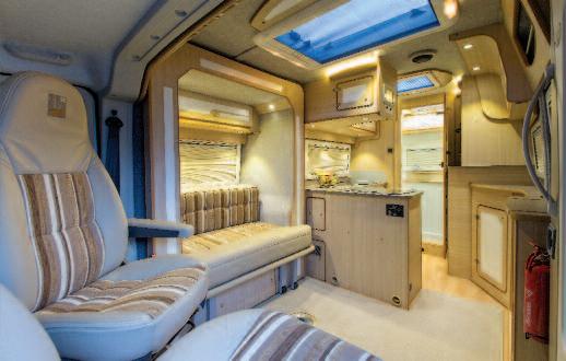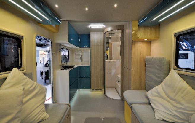 Even more emblematic are the IH Motor Homes products: specialized in the manufacture of high-end vans, this Knottingley manufacturer, in West Yorkshire, has in fact applied the side slide-out to the classic van set on Fiat Ducato An exemplary implementation, with the extensible which exter nally uses the space of the traditional side door, becoming completely invisible when not extracted, characterizes, in fact the interesting N 630 SL, a pure camper set on L4H2 van, with a length of 636 cm and featuring a very British layout: maxi rear toilet, L-shaped kitchen block and, in the front part, an actual living room integrated with the driver's cab, with the slide-out that, by offering a comfortable sofa within, allows you to free up the space