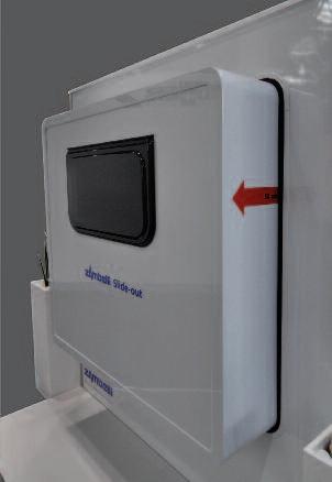 The Saneo is an ultra-compact and lightweight toilet that can be tur ned 90 degrees in either direction, providing optimal and ergonomic seating. It offers a new and highly effective impulse flushing system with automatic stop function, an anti-splash-back protection device and a self-closing lid and toilet seat Customers can also choose a high quality ceramic inlay and a touch panel using similar controls as a smart phone It is the first RV toilet developed in moder n residential design, supporting the industry trend of increased demand for improved level of mobile comfort.