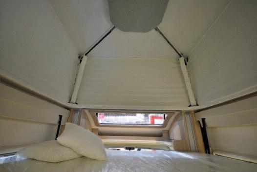 ble and creates a great feeling of spaciousness W ith the roof open you can even sleep on the fold-down bed, leaving it all up, providing maximum comfort for the passenger compartment below Thanks to the use of parallelograms, when the roof is open, an incredible rigidity of the system was obtained In addition, the coating is designed to be compacted into a small space, to be totally water-proof, allowing you to create a internal counter wall where the hot air can be channeled to allow for the use of the roof in the raised position even when the climate is colder The focus was on the limitation of the power consumption: the entire system is operated by a small 5 A geared motor, which provides a very low consumption if you consider weights and masses involved