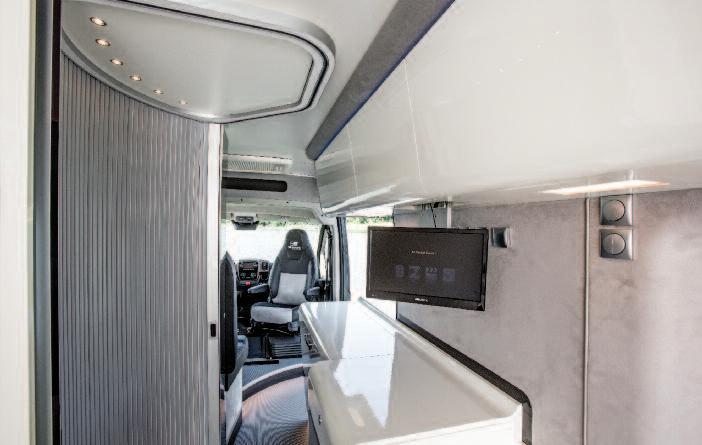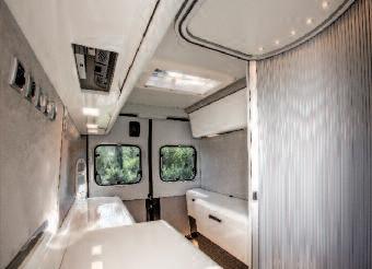 sibles on, is exemplary: beside the classic one, aimed at the living room, we have two additional ones, symmetrical, in the rear area of the passenger’s compartment, dedicated to the sumptuous bedroom with double nautical bed in the centre over the car garage Vehicles featuring maximum prestige and maximum customizing possibility deserve the maximum of the technology: these vehicles use particularly sophisticated materials as the carbon fiber, thus ensuring extreme robustness, lightness and aesthetic p e r f e c t i o n b u t re q u i r i n g a d e q u a t e i n v estments, often charged to the final customer, with figures very close to 30,000 Euro per single vehicle A price that, of course, represents a further total cost increase even for vehicles whose list price is already far over the 200,000 Euro, but that becomes utterly unfeasible for mainstream vehicles where it would almost double their regular price Yet, even in this class, there’s no shortage of proposals