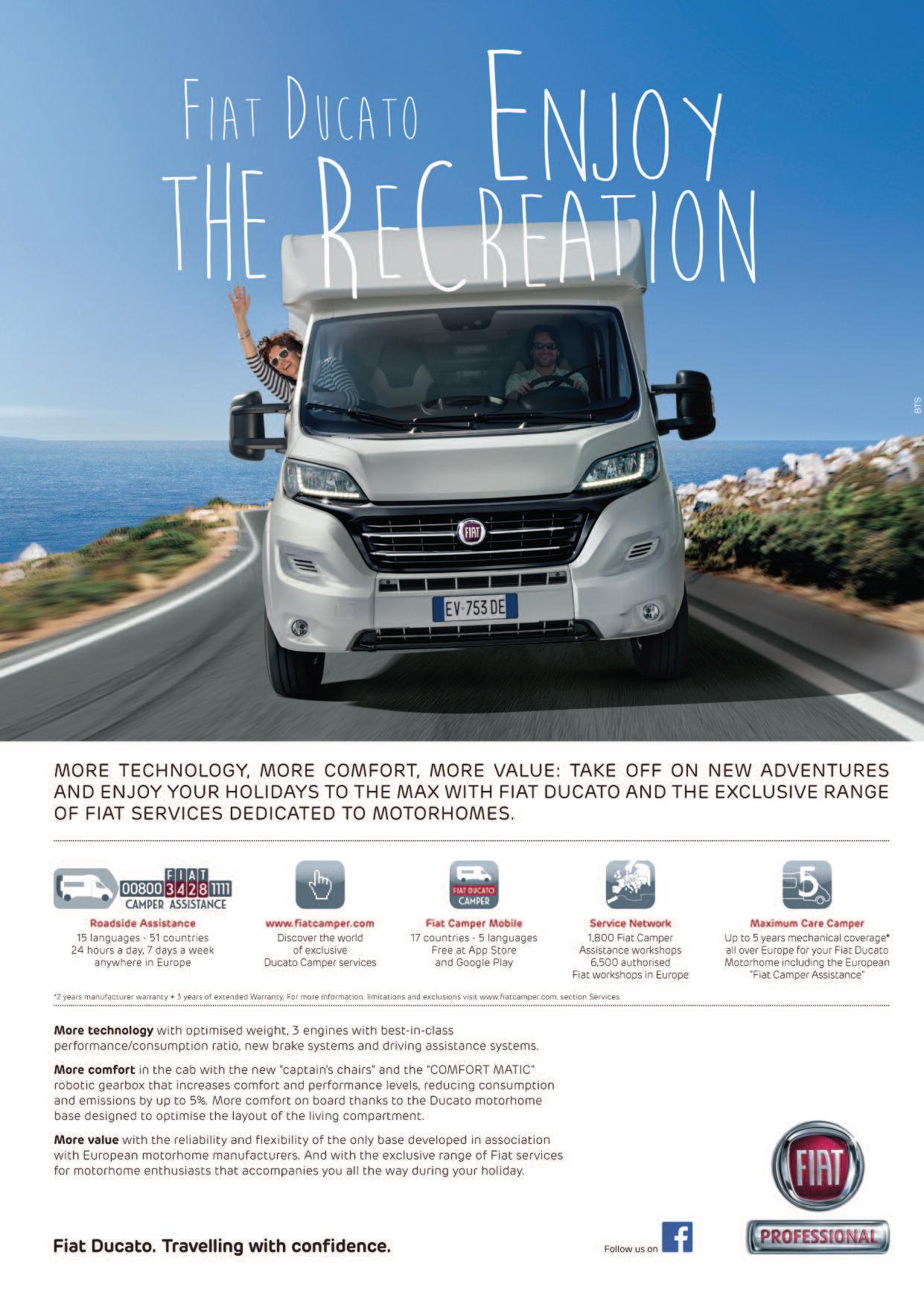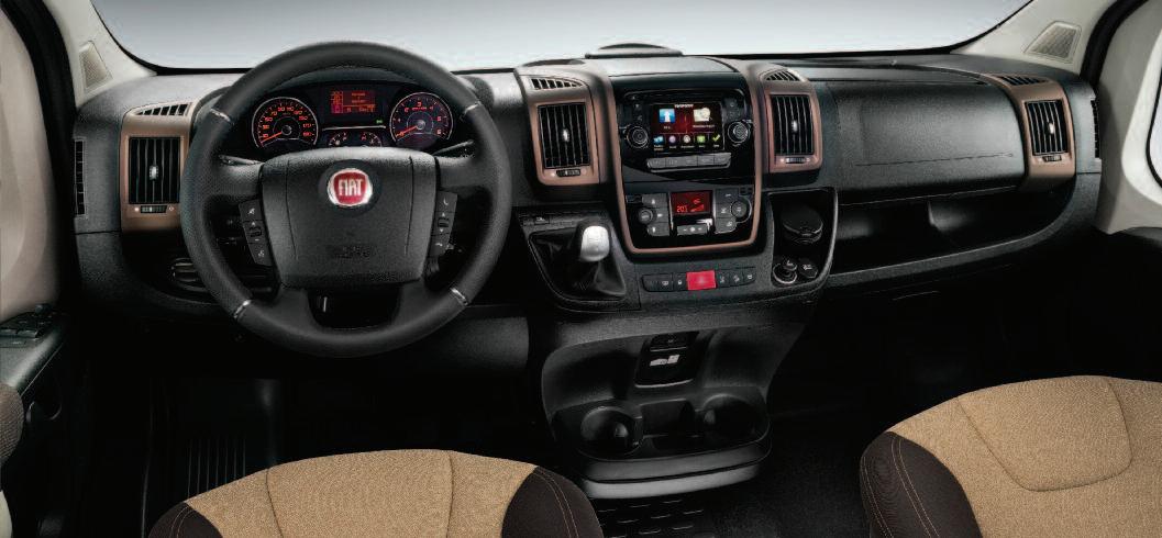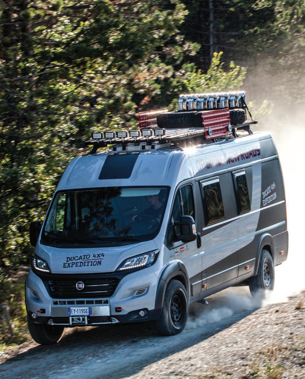 ground Smart technical solutions enhance its versatility and reassert its strong character Fiat Ducato 4x4 Expedition was prepared for customers with a sporty, adventurous lifestyle who want the best technological contents This is why the outfit includes tablet holder with USB port, touchscreen Radio UconnectTM NAV integrated the navigation system, rear camera and LED DRLs