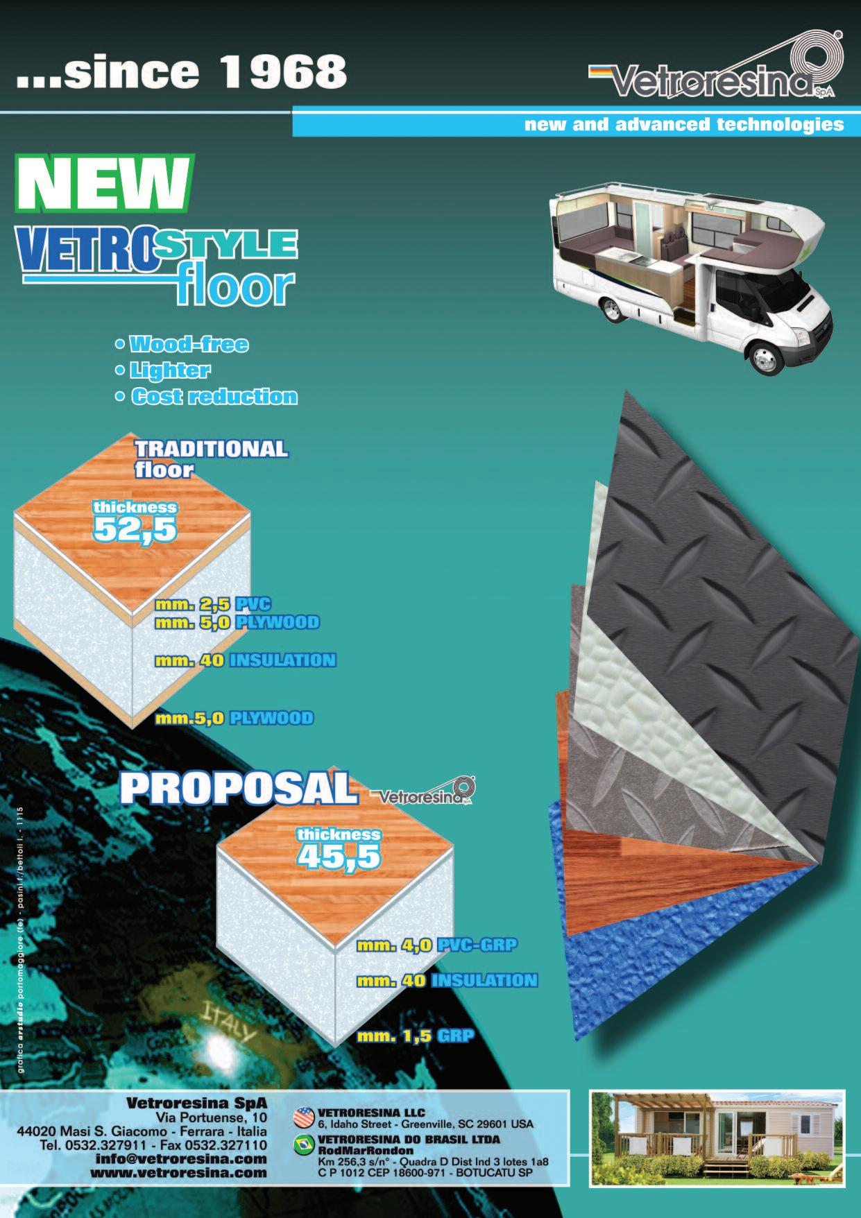 W ith technologically advanced products such as these, TecnoWall allows recreational vehicle manufacturers to innovate in their building techniques, providing concrete solutions to the everlasting issue of water infiltration and weight containment