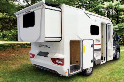 Today the motorized vehicles represent, in all likelihood, the most immediate application scope of the slide-out technology, not only ultra-luxury products, but also vehicles that, featuring smaller exter nal and inter nal sizes, may greatly benefit from the additional spaces one or more extensible provide Frankia’s challenge has now been taken up by Adria with the brand new Compact SLS, the superstar of the last Caravan Salon Düsseldorf A compact low profile, as the naming points out, less than six meters long, which is aimed at the couples, designed to be agile and easy to drive (212 cm in width) but capable of becoming, during stops, a more comfortable camper, thanks to the rear slide-out that, placed in the rear part of the vehicle, above the classic garage locker, creates, by protruding 70 cm, the space needed for two twin beds to be created A vehicle, then, that constitutes a sort of synthesis between the well-known and appreciated Compact SP and SL, with the bulk of the first during travels, and the convenience of the