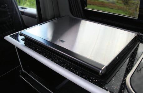 Thetford introduces the Topline 98 Hybrid series, com induction and gas cooking Topline 98 Hybrid series off the combination of one induction hob and two gas burners, available in two different glass shapes Being part of the Topline cooking range, it is made of the highest quality of Schott Ceran black glass, which is both appealing and easy to clean lnduction offers fast cooking, gas cooking allows users to cook everywhere, giving maximum flexibility It is possible to use both induction and gas at the same time At maximum power, the induction hob requires up to 7A which is nowadays available at almost all campsites throughout Europe The induction hob warms up quickly, especially with the Automatic Heat Up Function Induction is also very efficient, converting 90% of supplied power into cooking energy Therefore almost all heat is used to heat up the pan instead of the glass top By heating only the pan, induction cooking also brings safety, as the glass surface doesn’t get excessively hot and won’t remain warm for long If the surface is hot, the residual heat will be indicated by the LED sign above the control knob The built in Child Safety Lock can be easily activated and deactivated The design of the hob is determined by the shape of the glass and the positioning of the cooking pans Both shapes offer a compact yet ergonomic and practical layout, facilitating easy cooking