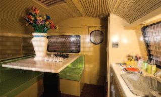 Functionality of the interiors, living solutions and spaces The distribution of spaces is based on a careful ergonomics study in terms of safety, usability, transformability, modularity and flexibility There is a strong reference to the furniture sector as far as the shapes, finishes and materials are concerned The plan develops over a length of a little less than 6 metres The layout is apparently the “classic” type and features the arrangement of a living area with dinette, kitchen, bathroom and sleeping areas Dinette/Living area characterised by functionality and dual usability, in both the daytime and night time version All the elements can be transformed depending on the needs: innovative mechanisms allow you to