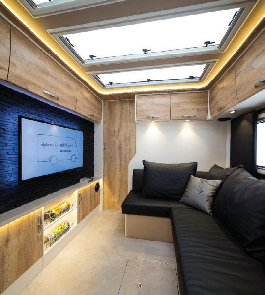 on the market. And if you note that the pull-down beds of the past were longitudinal, you’ll see that the circle closes. Obviously, we no longer have old fashioned metal levers but electric motors and synthetic belts aimed at soft movement and continuous adjustment on different levels. Hymer group has just started the production of the new Burstner Ixeo and Dethleffs 4-Travel, but proposals from Trigano with the Challenger 280 and the Chausson 620 are upcoming as well. Speaking of beds, it is fair to mention the sliding-type double bed peninsula, which allows to increase the space between the bed and the walk-in shower or toilet compartment. In addition, the pulldown beds permit to vary the volume of the garage below: although those beds (either lateral or peninsula) have been adopted for many years now, the proposal regarding electrically adjustable twinned beds is brand new: see recent Magis 84 XT and Roller Team Zefiro 284 TL (in 2009 Trigano Spa itself timidly installed a similar solution, although manually operated, on the Granduca and Riviera lines).