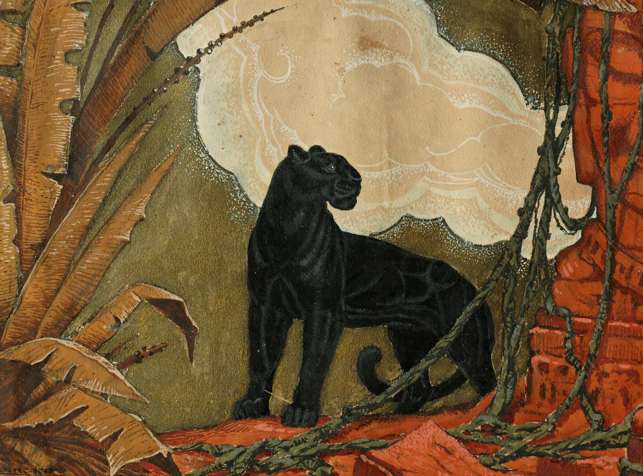 Panthère dans un décor de ruines cambodgiennes