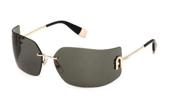 Furla arch logo on the temples that match the temple rim tips in a contrast color.