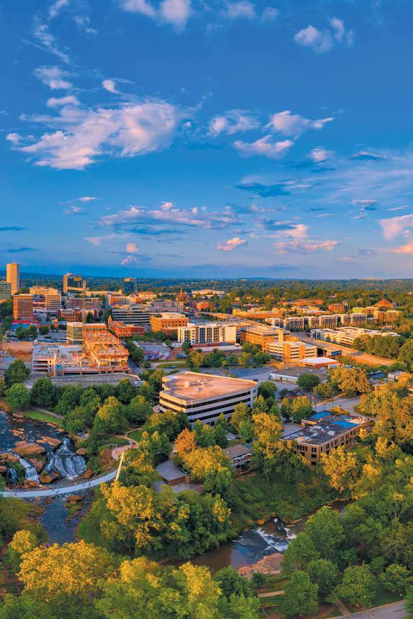 THINK AMAZING FOOD, LIVE MUSIC, PRO SPORTS AND A BUZZING ARTS SCENE, ALL WRAPPED AROUND STUNNING FALLS PARK. Whether you’re biking the Swamp Rabbit Trail, catching a concert, or grabbing tacos, there’s always something going on. It’s a city that’s growing fast, leading innovation and is home to major corporations such as BMW, Michelin and Lockheed Martin.