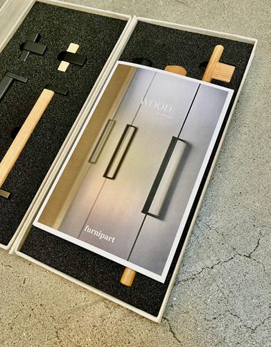 Presentation Box with folder - To be used by sales managers reps when presenting furnipart handles, or to be used in showrooms for client presentations.