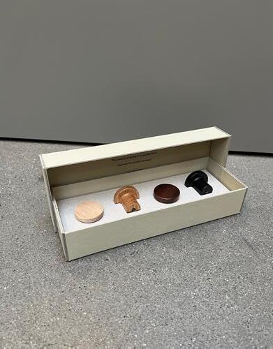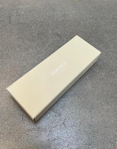 Presentation box with the 4 finishes of the VONSILD collection and a QR code to the VONSILD landingpage.