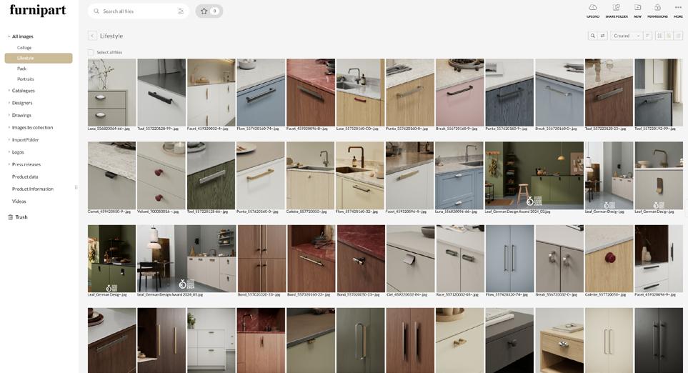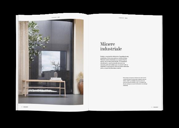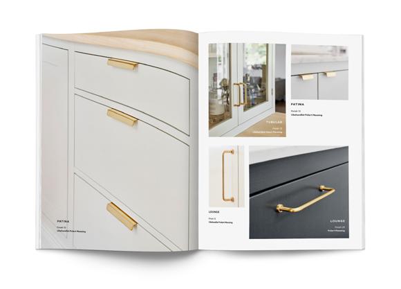 Layout with lifestyle image in combination with pack shots of available finishes. Customer product codes to each model and finish.