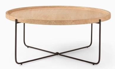 Kiln-dried solid mango wood and finished in a light honey with steel legs.
