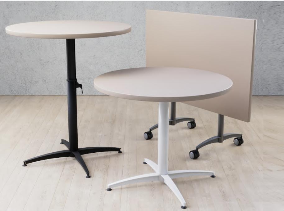Zenith is a modern, fully welded steel base with elegant, sweeping lines. Like our popular Horizon Base Series, the Zenith can be upgraded with casters, our FlipTop mechanism, and can adjust in height with our AeroLift. Wire management access is also available as an upgrade. Max top size is 48"R.