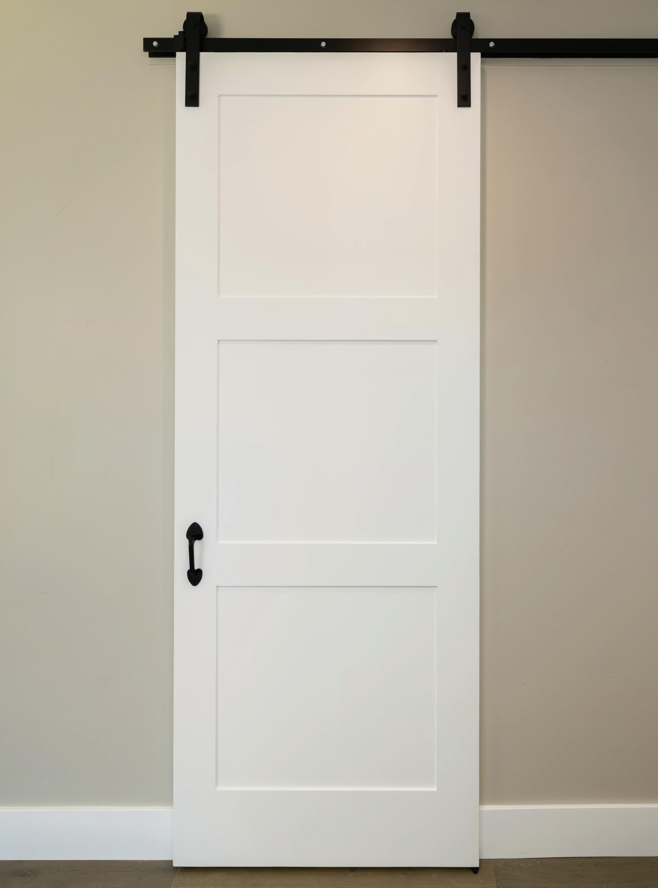 • Adjustable top hung exposed captive barn door style rollers with mounting brackets.